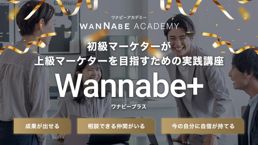 新サービス『Wannabe+(ワナビー プラス)』を提供開始いたしました! 本サービスは基礎学習を終えて実践デビューした初級マーケターが、「わかる」「出来る」からさらに一歩進み、“成果が出せる”上級マーケターを目指すための継続型学習コミュニティです... -