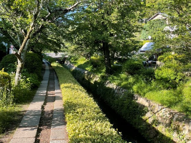 近隣には哲学の道、疎水沿いを北へ上がっていくと、カフェも多数あり、疎水を見ながらお茶が楽しめます。