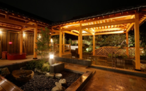 露天風呂は庭園風になっています。庭職人が手入れをしており、居心地の良い空間でリラックスできること間違いなし!