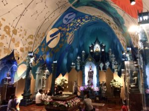 最上階の天井画もまたフォトジェニック!!ドイツ人アーティストによって描かれた天井画で、太陽と 8 つの星 (地球を除く) で構成されています。淡いブルーの空間に鎮座する仏陀像も神秘的に映ります。