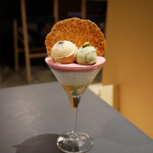 札幌のシメパフェを代表するお店の一つで、連日行列を成している人気店です。一番人気のパフェは「塩キャラメルとピスタチオ」で、塩キャラメルとピスタチオのアイス、その下にカシスムースとリンゴのジュレを組み合わせており、食事の後にもさっぱりと食べられるパフェです。店名の通り、パフェと一緒にコーヒーやお酒を一緒に楽しめます。