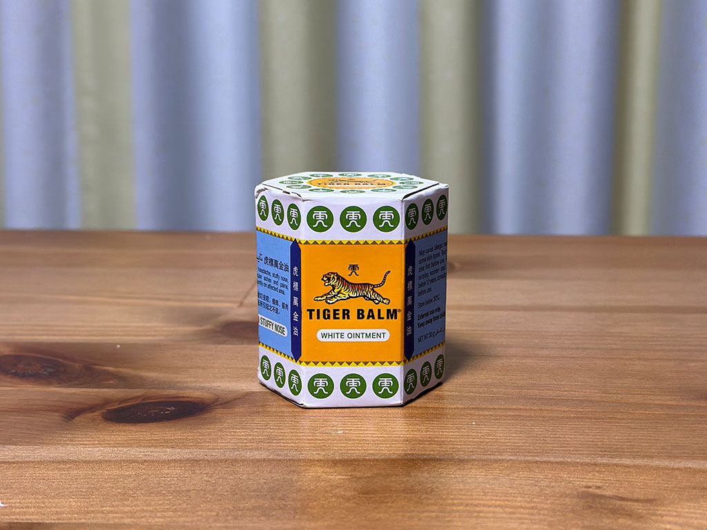 タイガーバームは、筋肉痛や肩こり、虫刺されなどに使用できる万能バームとして世界中で知られています。シンガポールの薬局や空港、リトルインディアにあるムスタファセンターで購入できます。