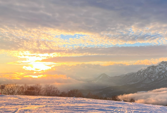 夕焼けと山のマッチアップを楽しめるスキー場はなかなかありません!
