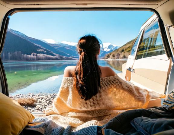 テント設営の手間がなく、好きな場所で自由に泊まれるため、初心者や女性でも気軽に楽しめます。