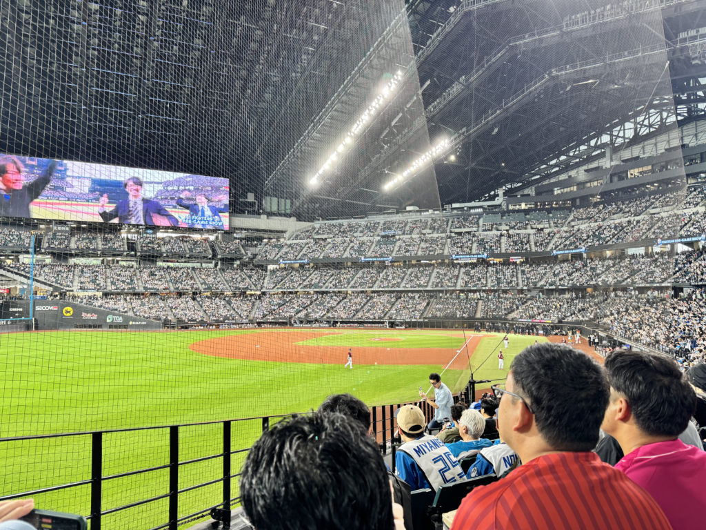 オススメはFIELD LEVEL(1階レベル)の内野席の一番端・ライン際にもっとも近い席です。