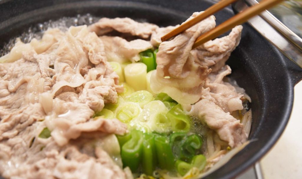① しょうが香る「豚バラ×ねぎのあったかスタミナ鍋」